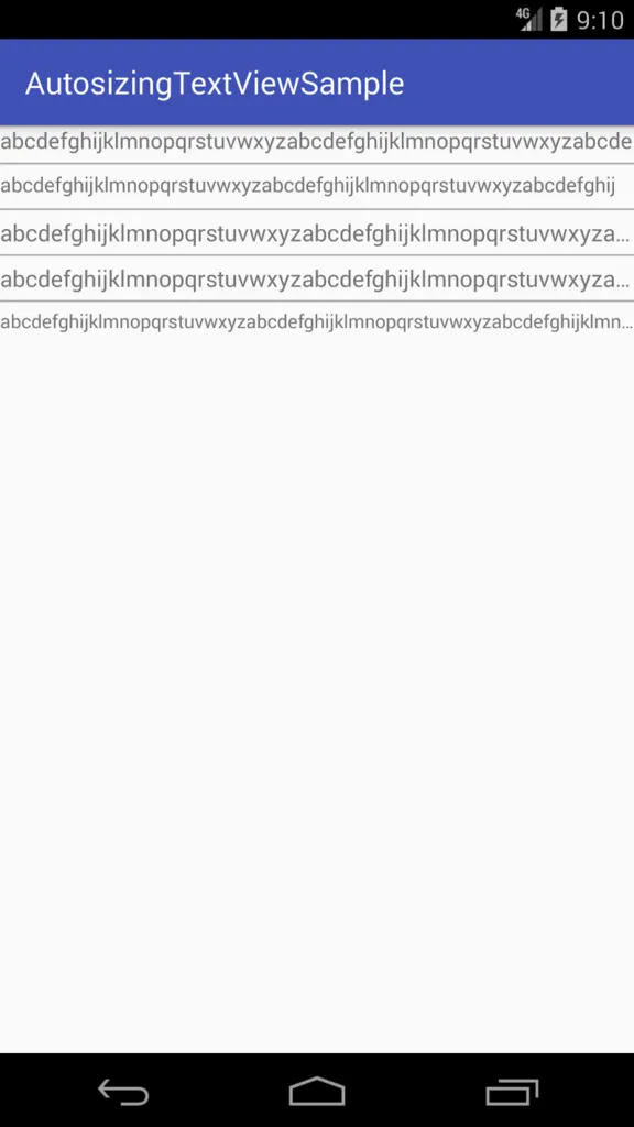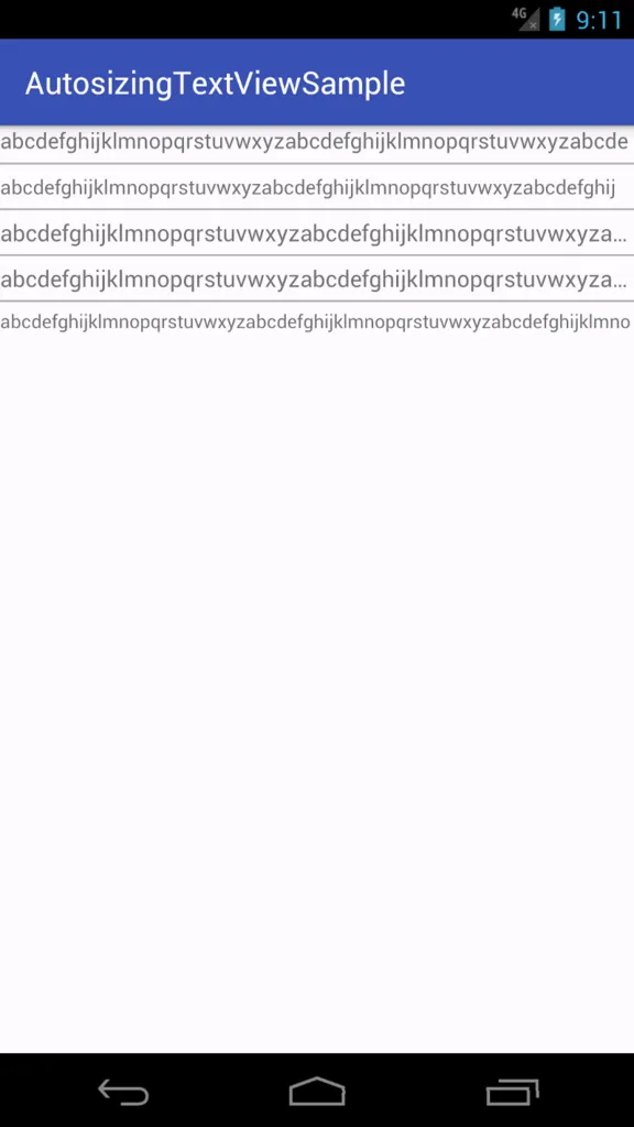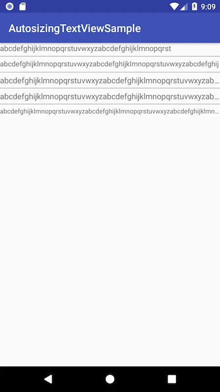 Autosizing TextView関連のAttributeをapp namespaceで用いることにより、Android 8.0の場合とほぼ同じ結果となり、きちんとAutosizingされていることがわかる。